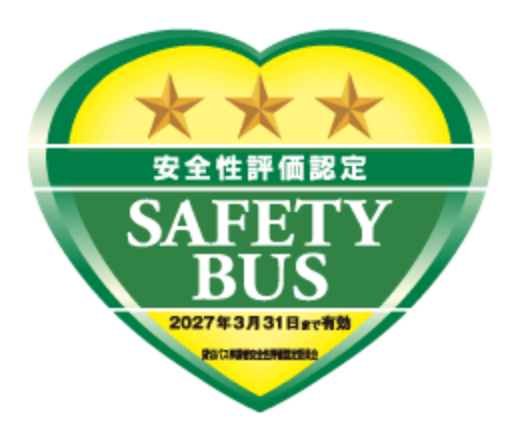 当社は貸切バス事業者安全性評価認定制度において最高評価三つ星の認定を受けました。